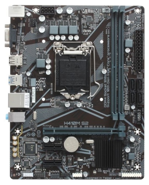 Материнская плата LGA 1200 Gigabyte H410M S2 H410/2xDDR4/1xPCI-e16/2xPCI-e1/4xSATA3/2xUSB3.2/4xUSB2.0/2xPS/2/1xVGA/1xGLAN/mATX