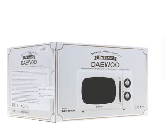 Микроволновая печь Daewoo KOR-6697W – это прибор, который поможет гарантировать комфорт в процессе приготовления блюд. Размеры устройства достигают 44.9x25.9x32.5 см, а вместительность составляет 20 литров, что делает его идеальным приобретением для ежедневной эксплуатации. Поворотные механические переключатели способствуют комфортному управлению функциями микроволновой печи: это поможет быстро привыкнуть к прибору. Устройство мощностью 800 Вт выполнено в ретро-дизайне в белом цвете, потому модель понравится любителям устройств с необычным дизайном.