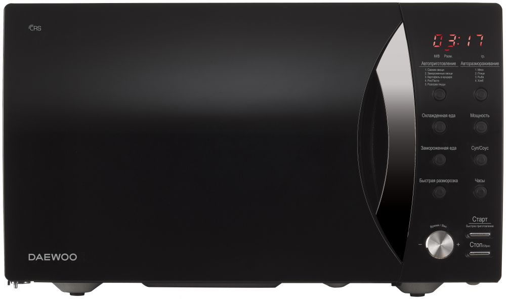 Внутренний объем Daewoo KOR-81FRB составляет 23 л – поместится средний цыпленок, тушка минтая или крупная столовая тарелка с ужином. Выбор программ осуществляется посредством нажатия на кнопки, информация о выбранном режиме и оставшемся до завершения цикла времени выводится на дисплей.
