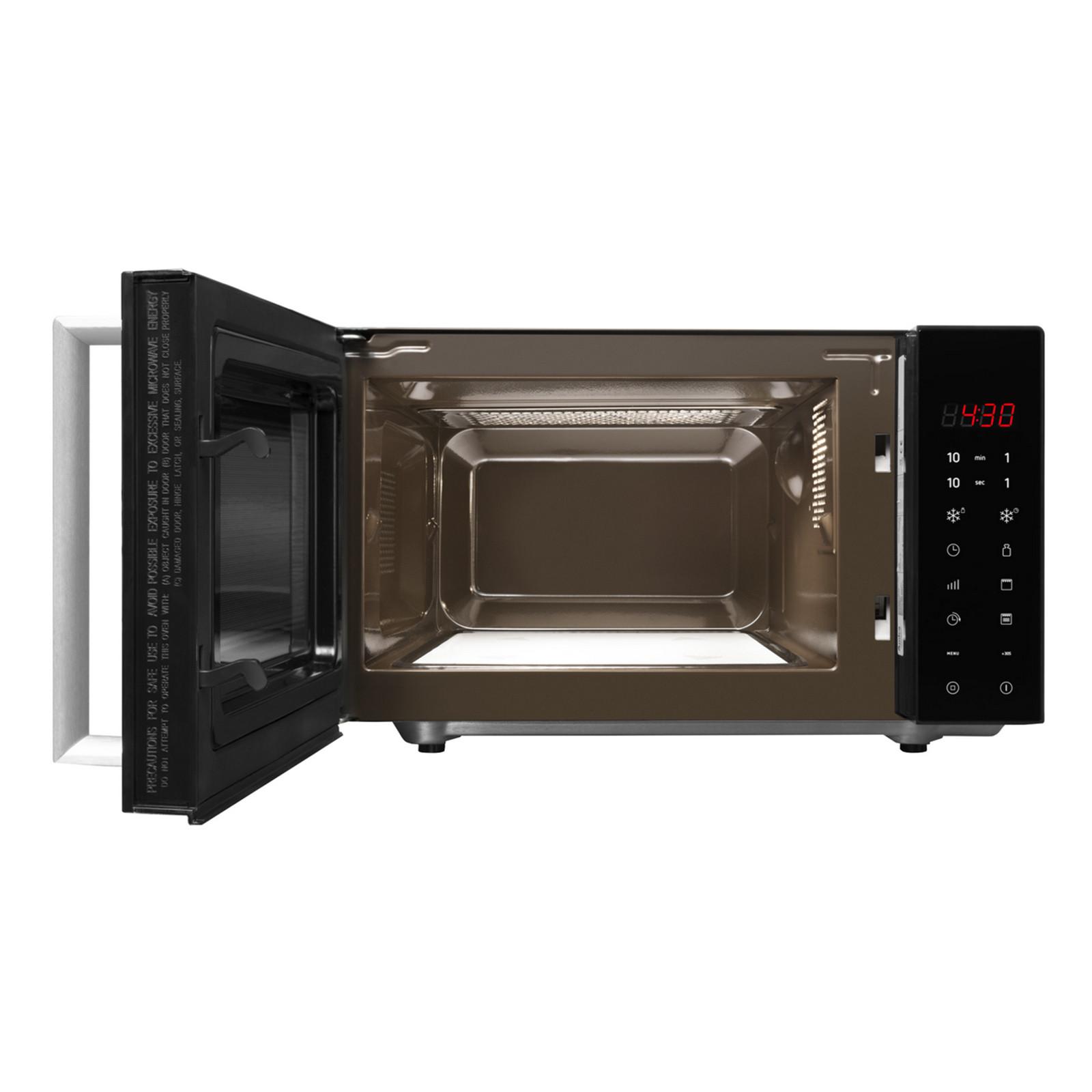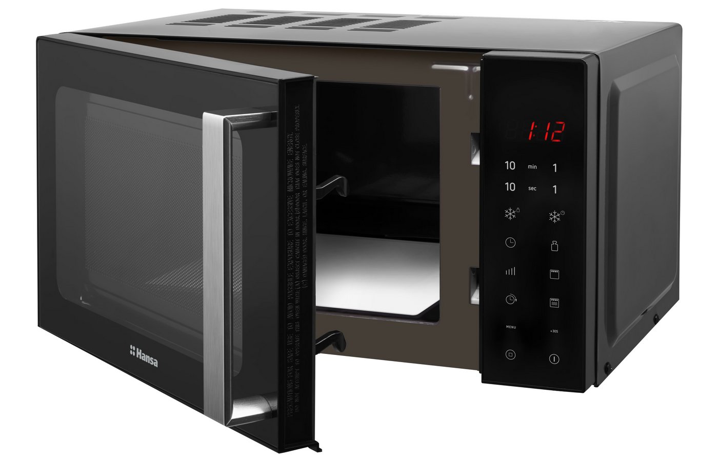 Микроволновая печь Hansa AMGF20E1GFBH в матовом черном корпусе имеет обширный функционал, позволяющий не только разогревать пищу, но и готовить ее. Для этого прибор мощностью 700 Вт оснащена опциями авторазморозки, авторазогрева, 11 программами приготовления пищи. Двадцатилитровая камера прибора дополнена встроенными грилем мощностью 1200 Вт. Это позволяет готовить пищу при помощи микроволн и гриля, либо комбинировать оба этих режима.