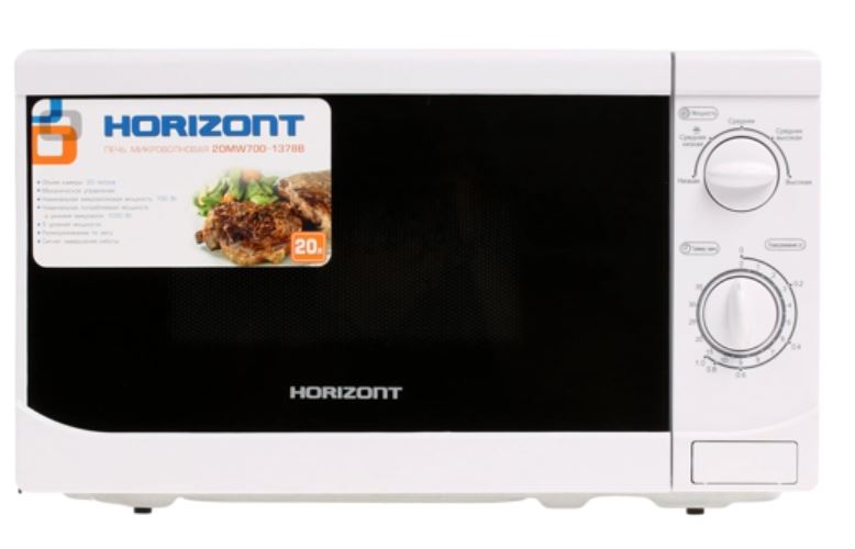 Выбираете устройство быстрого разогрева? Специально для вас создана микроволновая печь Horizont 20MW700-1378B. Изделие серебристого цвета с размерами 26х45.5х33.5 см и массой 10.6 кг удачно впишется в кухонный интерьер. Мощность этой печки – 700 Вт, ее вместимость – 20 л. Нагревательный прибор даст вам возможность оперативно разогреть порцию остывшего супа или второго блюда.