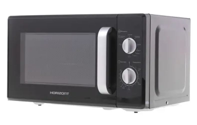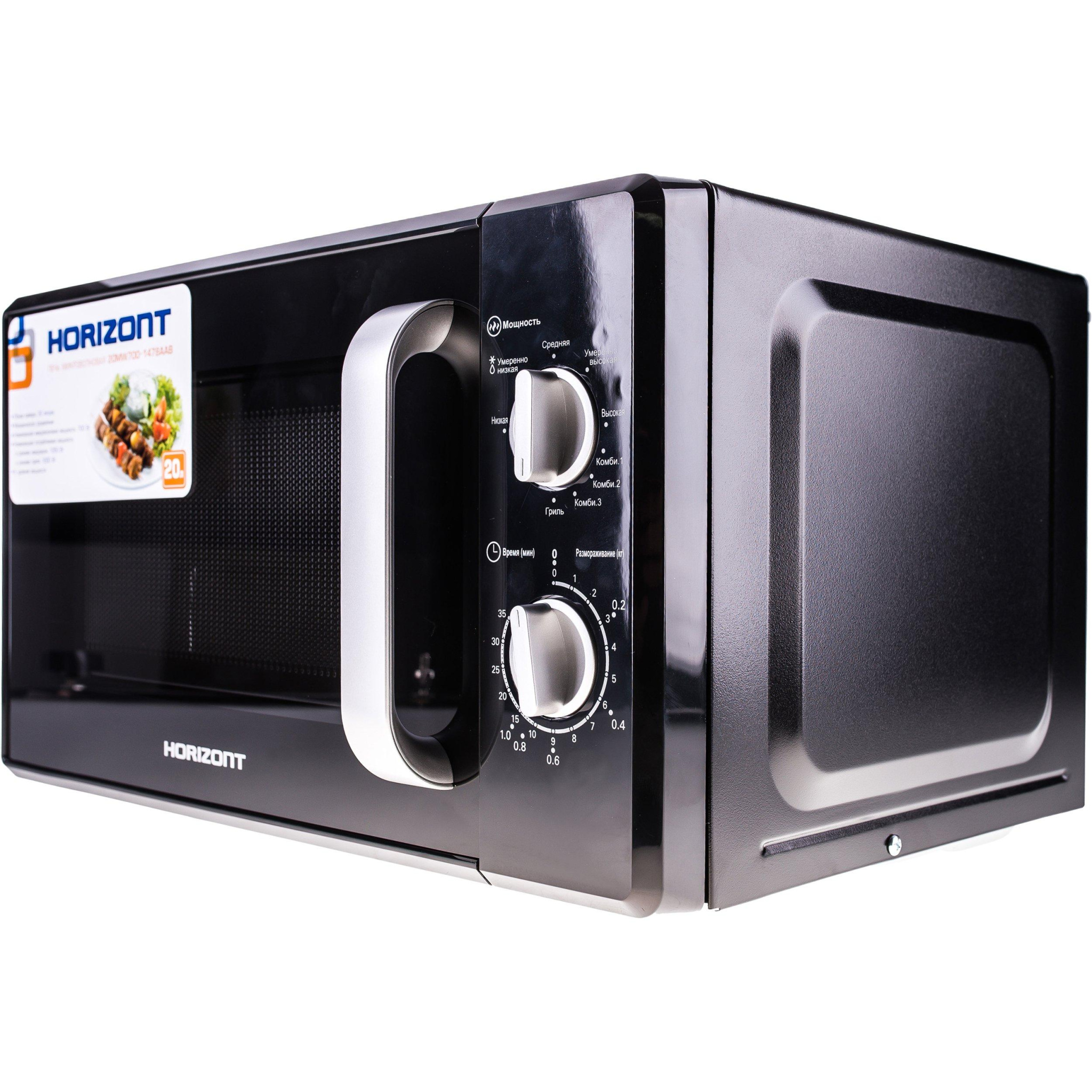 Микроволновая печь Horizont 20MW700-1478AAB в черном корпусе с серебристыми контрастными вставками – полезный в быту прибор. Его вместительность составляет 20 л, что позволяет готовить и разогревать пищу для всей семьи. Внутри печь покрыта эмалированной сталью, поэтому гарантирует долговечность. Она вмещает внутри поддон размером 25.5 см. Навесная ручка используется для открывания дверцы. Для семьи, в которой есть маленькие дети, полезной опцией станет блокировка от детей.