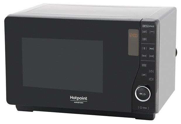Внутренний объем камеры в 25 л считается увеличенным. Это позволяет использовать при приготовлении пищи большие тарелки, блюда или керамические кастрюльки. По окончании работы микроволновой печи раздастся звуковой сигнал, который при необходимости можно отключить. Управление печью осуществляется при помощи сенсора, поворотного механизма и дисплея. Блокировку кнопок от детей также можно отнести к достоинствам Hotpoint-ARISTON MWHA 2622.