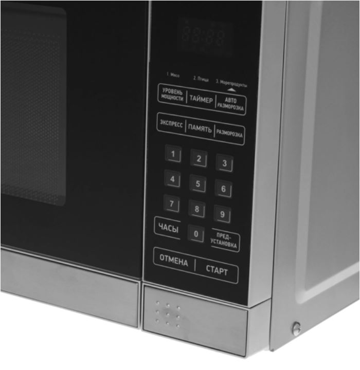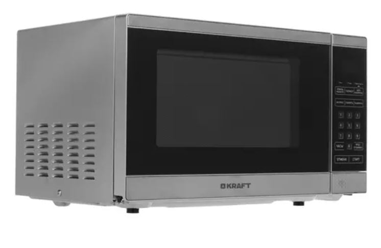 Микроволновая печь Kraft KF20MW7S-300D имеет внутренний объем 20 литров. Предусмотрен таймер на 30 минут.