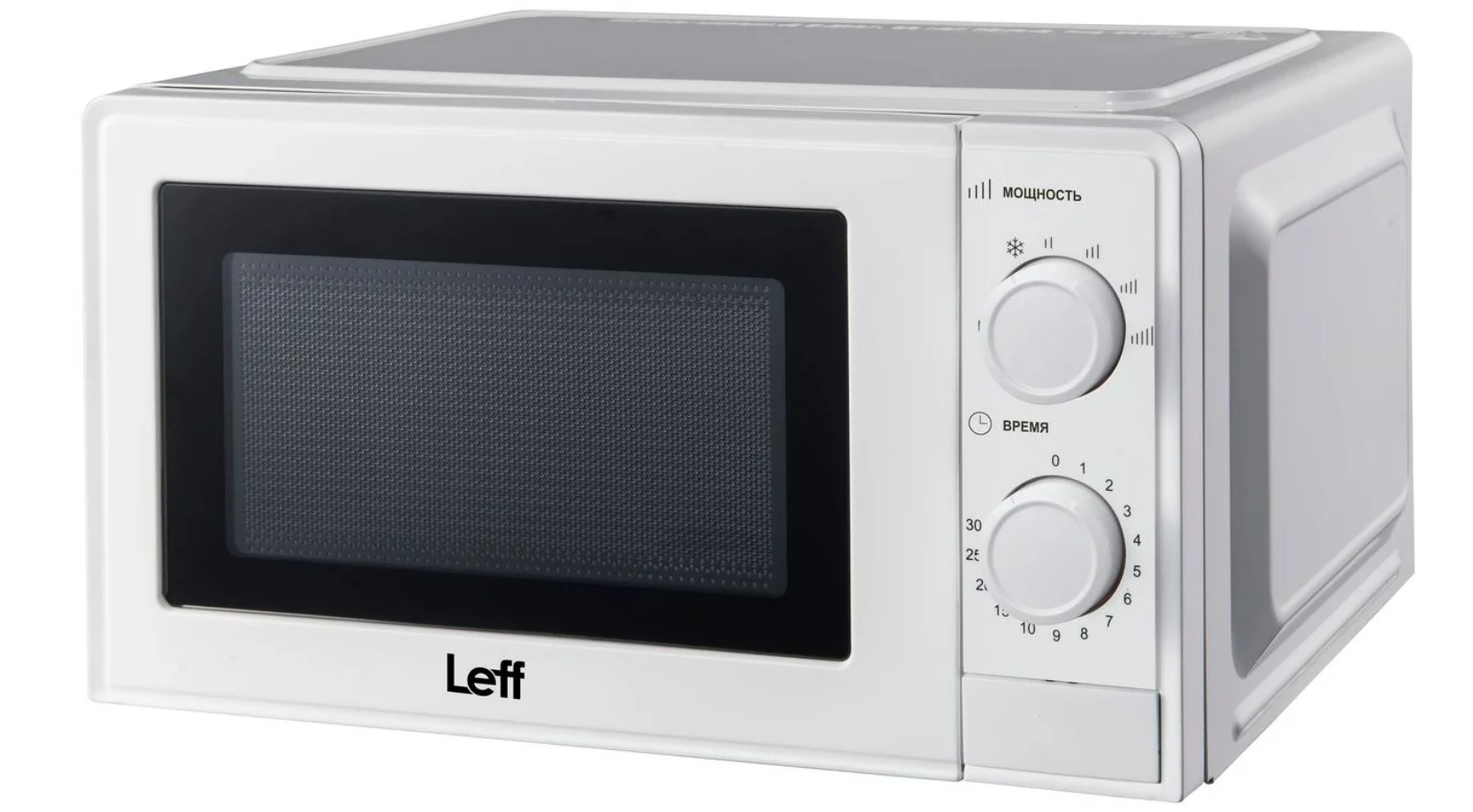 Готовьте и разогревайте еду в микроволновой печи Leff 20MM701W. Ей просто пользоваться, она не занимает много места и хорошо вписывается в интерьер кухни. Регулируйте настройки так, как вам нужно – для этого предусмотрена несложная механическая система управления. Кнопки и дисплей на фронтальной панели позволяют выбрать мощность микроволн и установить время на таймере.