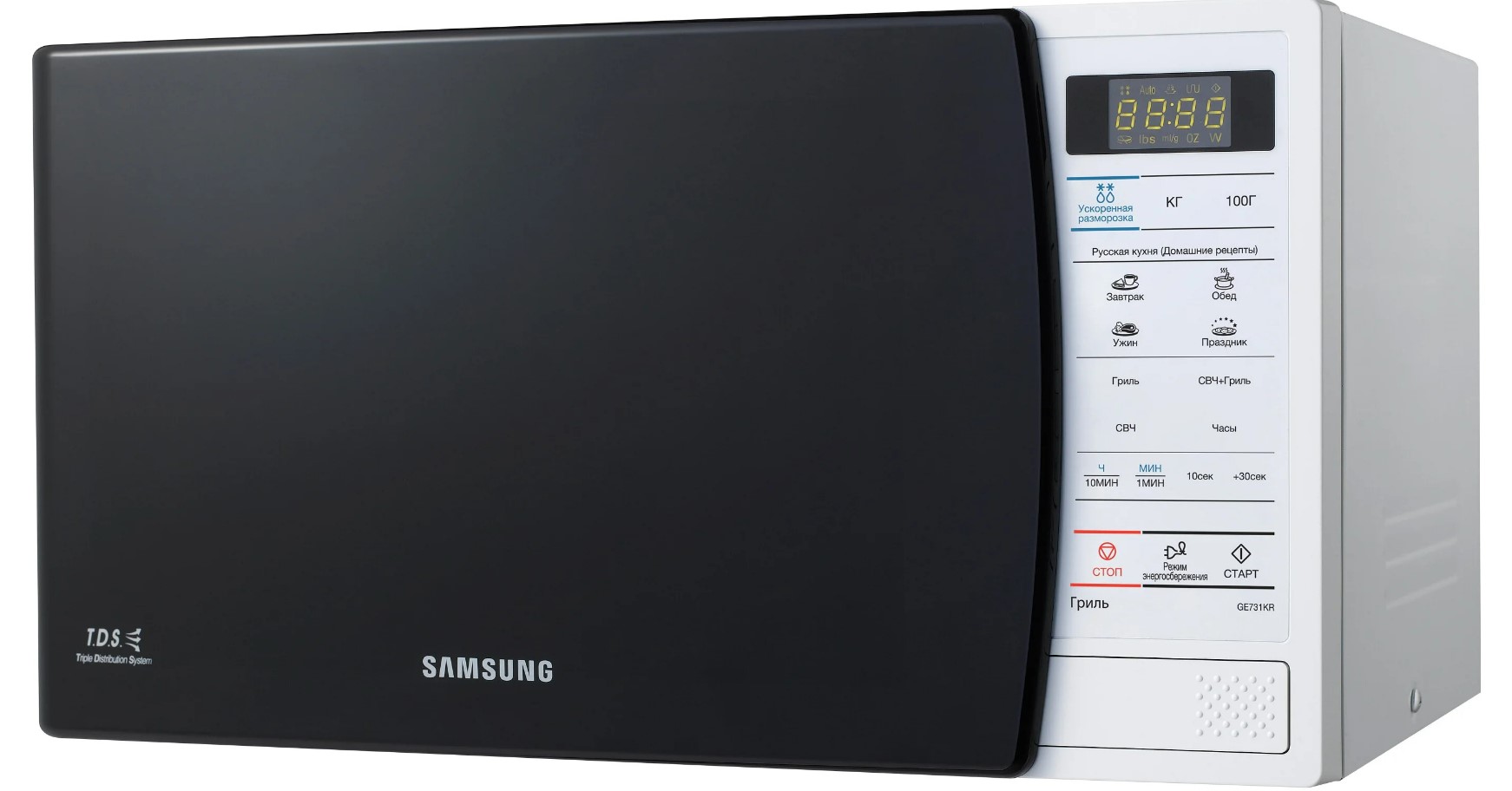 Компактная микроволновая печь с грилем. Сенсорное управление. Автоматические программы приготовления традиционных блюд русской кухни «41 рецепт русской кухни». Время разморозки сократилось до минимума. Часто после размораживания часть продукта остается твердой как лед, в то время как другие части - мягкими. Технология быстрого размораживания, разработанная в компании Samsung, позволяет размораживать продукты быстро и равномерно, не ухудшая питательных свойств продуктов.