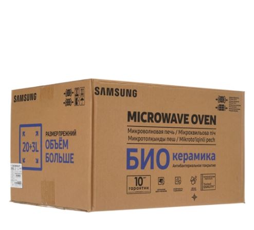 Микроволновая печь Samsung GE88SUT/BW сочетает элегантный стиль, интуитивное управление с помощью кнопок и востребованные функциональные возможности, поэтому станет востребованной техникой на вашей кухне. Оснащенная различными автоматическими программами, печь объемом 23 л позволяет выполнять разогрев, размораживание и приготовление еды. Благодаря панели с кнопками и дисплеем обеспечивается простота управления доступными режимами. Покрытие камеры на основе биокерамической эмали отличается стойкостью к повреждениям и простотой в очистке. Внутри печи Samsung GE88SUT/BW установлен поворотный поддон диаметром 28.8 см.