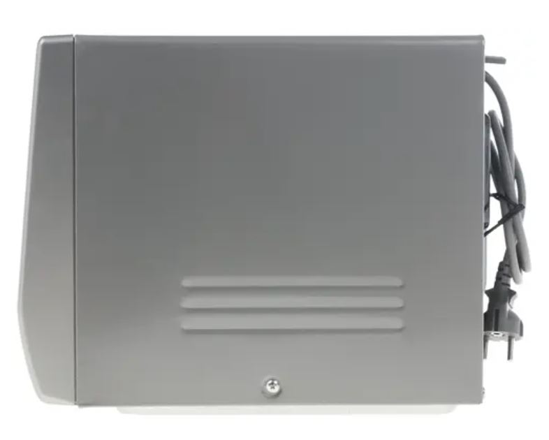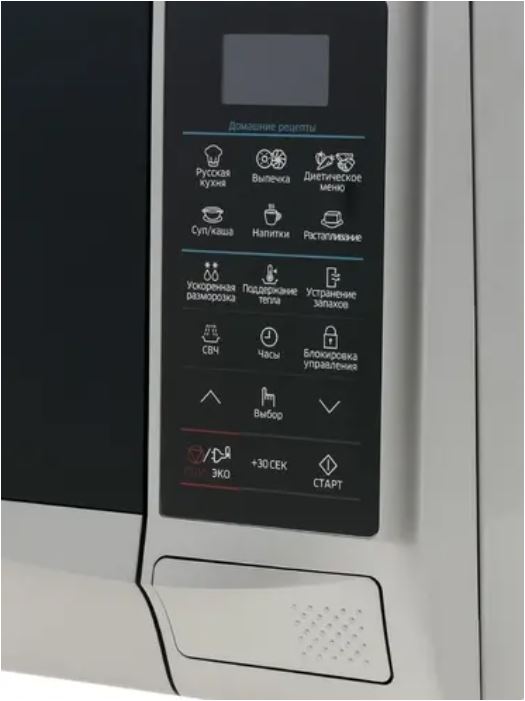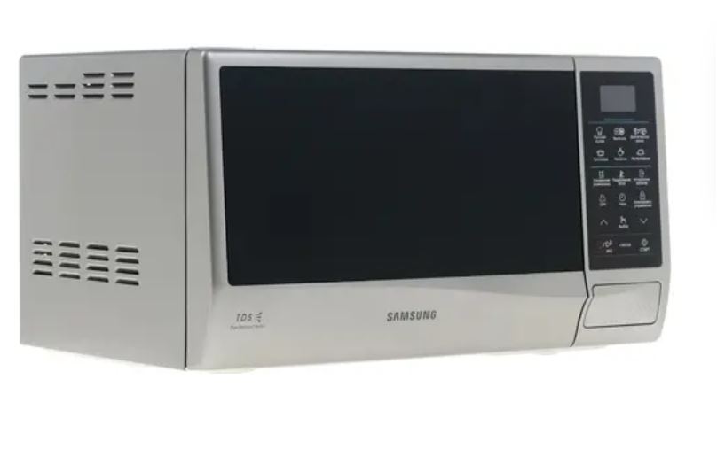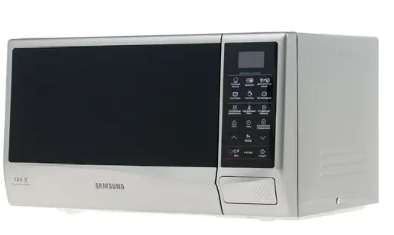 Samsung ME83KRQS-2 оснащена сенсорными переключателями, к которым несложно привыкнуть, и небольшим дисплеем. С помощью режима разморозки можно подготовить продукты к запеканию. Черно-серый корпус помогает микроволновке встраиваться в любой интерьер кухни.