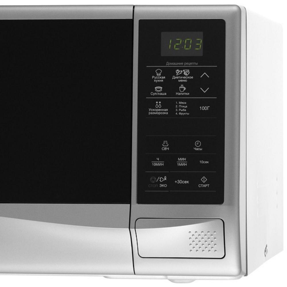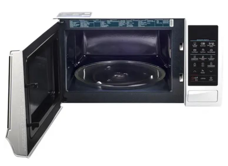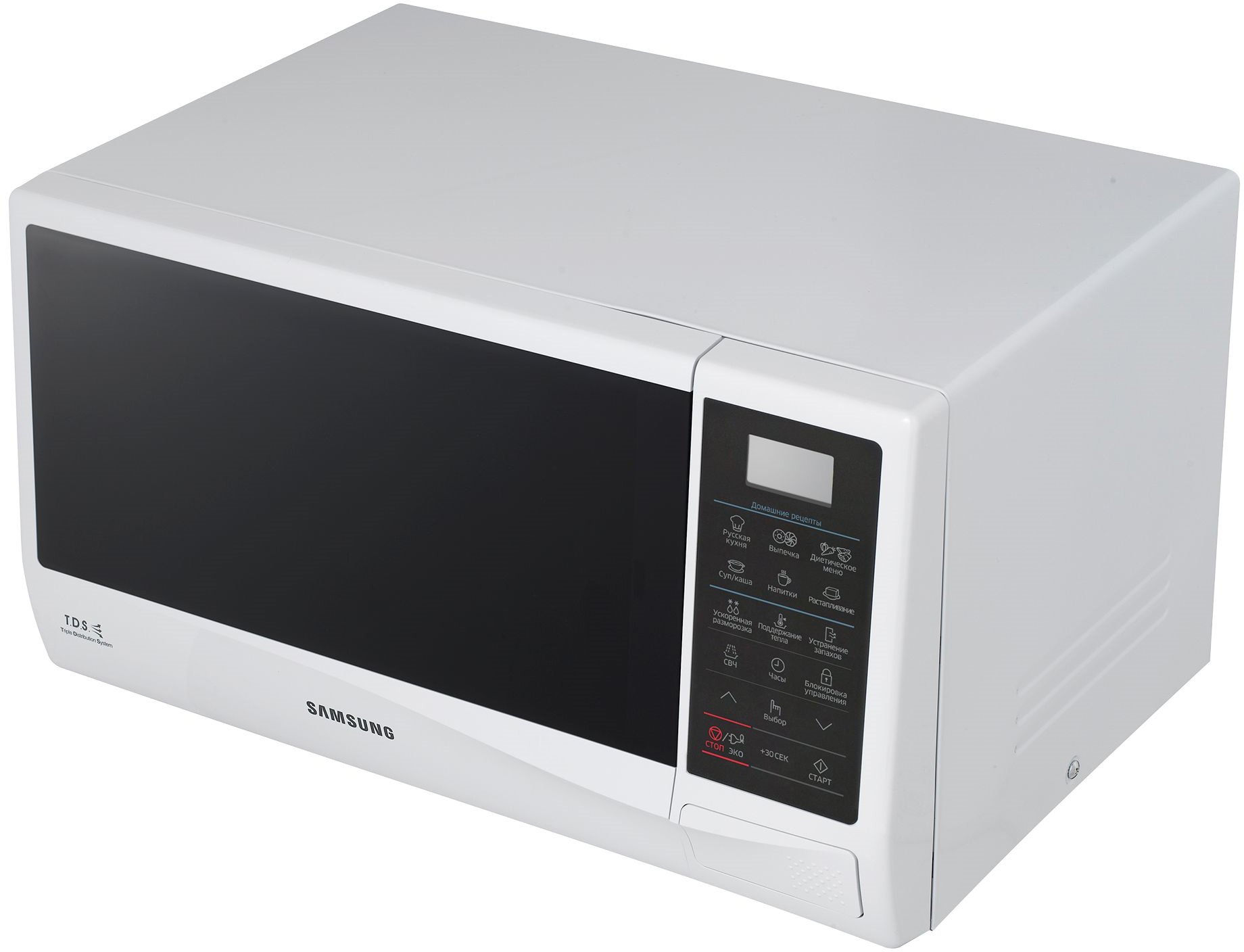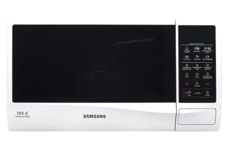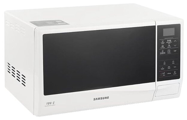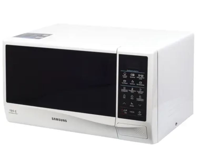 Samsung ME83KRQW-2 – микроволновая печь объемом 23 литра позволит приготовить полезные блюда для всей семьи. Диаметр поворотного стола равен 28,8 см. Мощность модели составляет 800 Вт. Внутри микроволновая печь покрыта прочным керамическим материалом, за которым легко ухаживать и поддерживать в чистоте. Управление – электронное, осуществляется при помощи сенсорных кнопок, а ход работы и выбранные режимы отображается на дисплее.