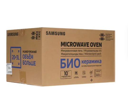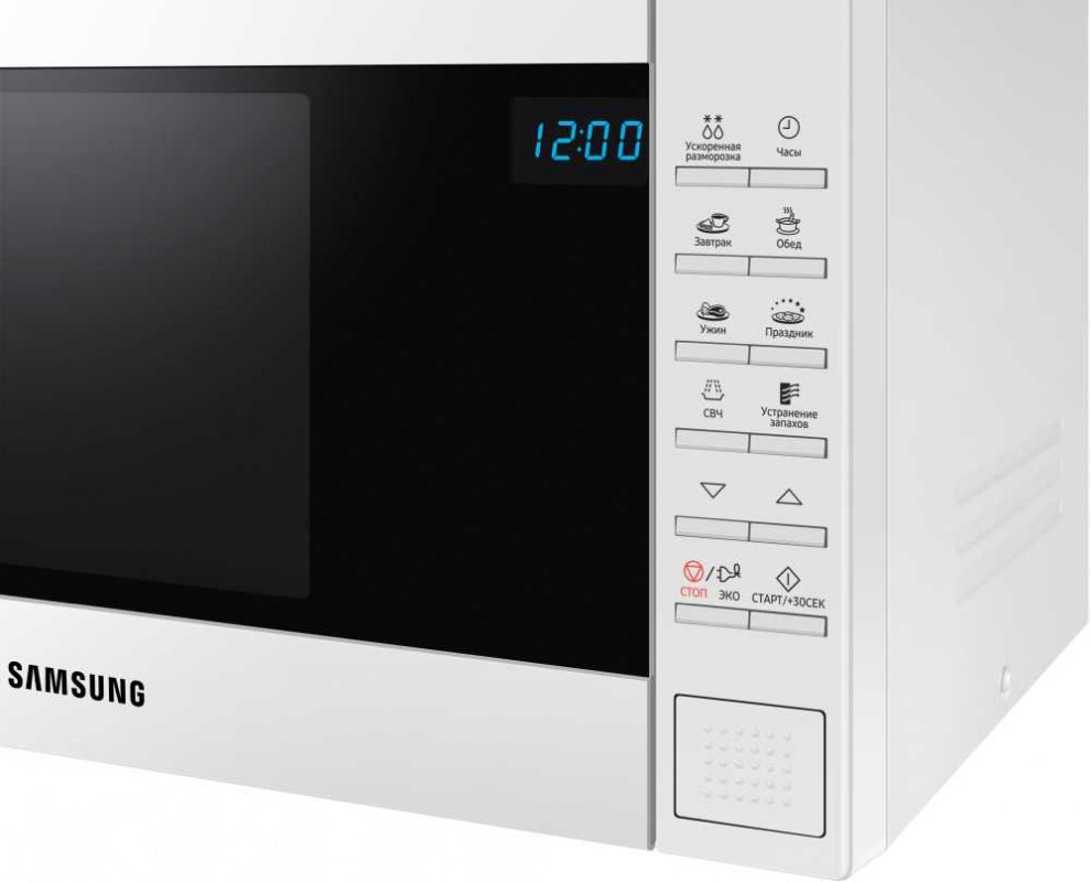 С моделью Samsung ME88SUW вы позабудете о длительном размораживании продуктов, ведь в ней появился соответствующий режим. Встроенный таймер, рассчитанный на 99 минут, способен в автоматическом режиме приостановить работу домашней помощницы. Кроме того, вы по достоинству оцените наличие функции, устраняющей все неприятные запахи из основной камеры.