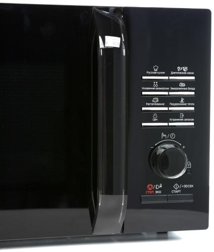Все перечисленные плюсы дополняются наличием в камере антибактериального керамического покрытия, которое легко чистить. Объем камеры составляет 23 литра, мощность микроволнового излучения – 800 Вт. В комплект включена пароварка для тех, кто хочет следить за своим здоровьем.