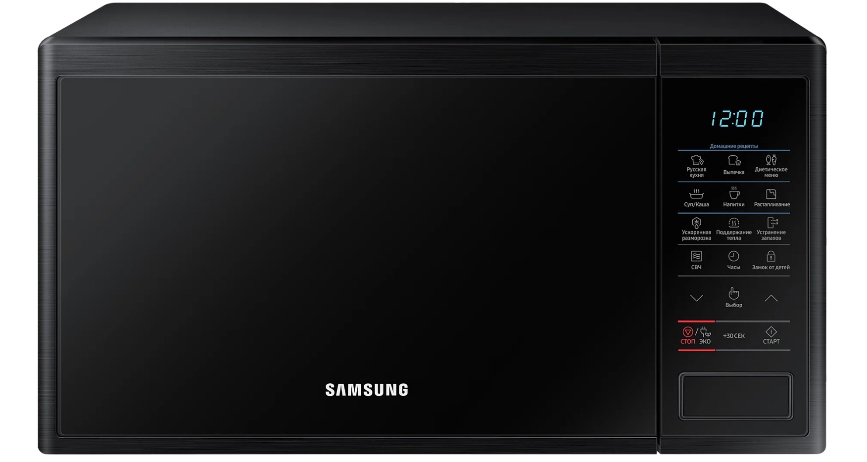 Микроволновая печь Samsung MS23J5133AK представлена в элегантном черном корпусе с дисплеем и сенсорным управлением. Данная модель оснащена 16-ю программами, включая авторазморозку и авторазогрев. Вы можете настроить время или активировать блокировку от детей.