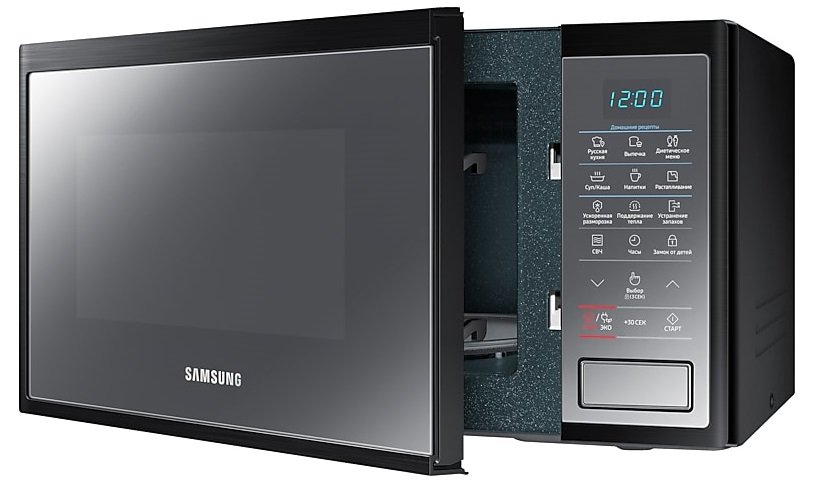 Samsung MS23J5133AM/BW оснащена системой сбережения электроэнергии, когда она находится в режиме ожидания. Кроме того, есть биокерамическое покрытие с долгим сроком службы, антибактериальным эффектом, и ускоренный режим разморозки. Потребляет до 1150 Вт и работает с мощностью в 800 Вт. Вмещает до 23 л, благодаря поддону диаметром 28.8 сантиметров, предусмотрен вращающийся стол. Имеет сенсорный и удобный тип управления с крупным дисплеем, защиту от излучений и открытия двери