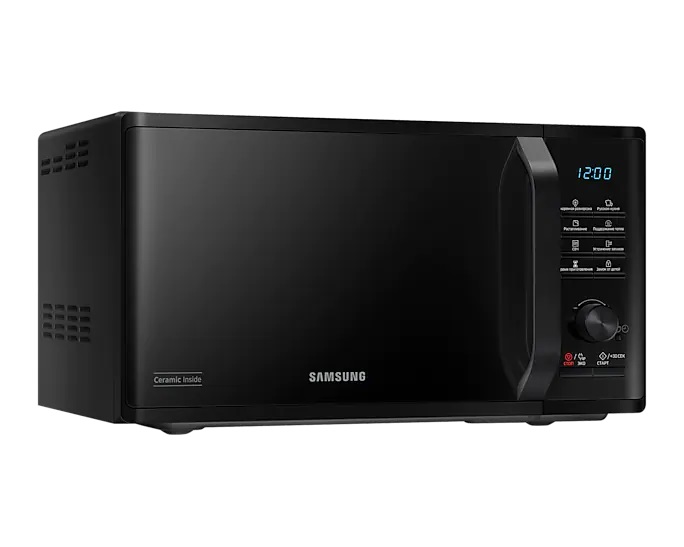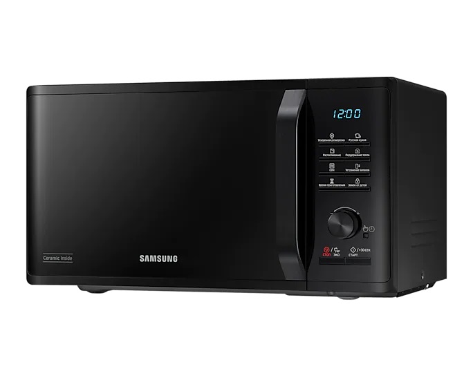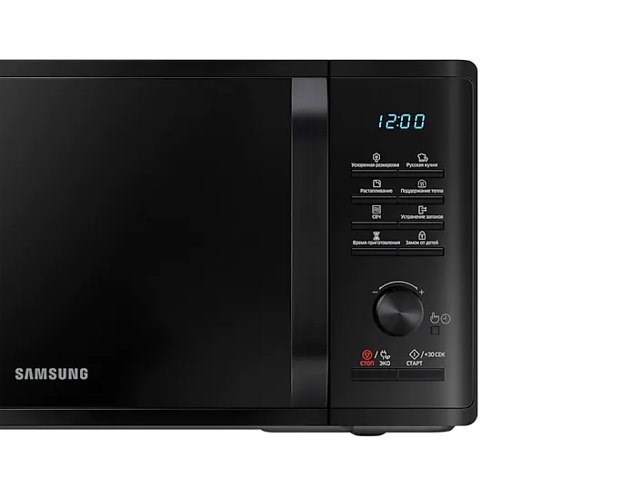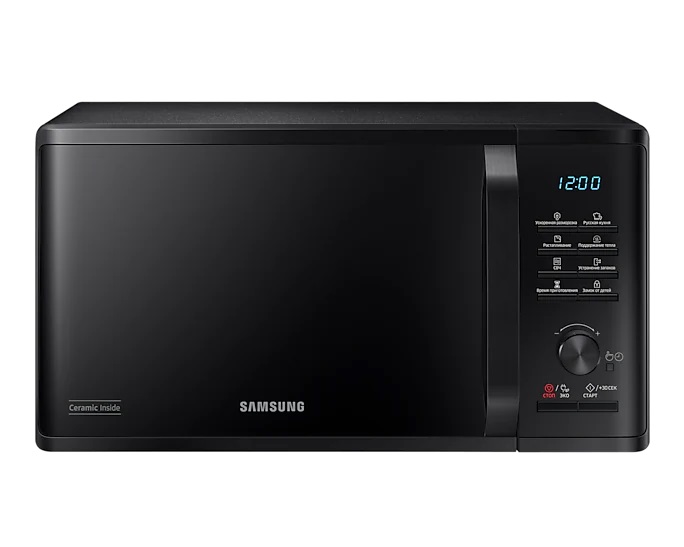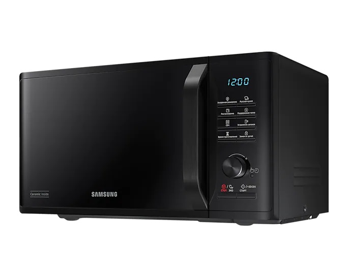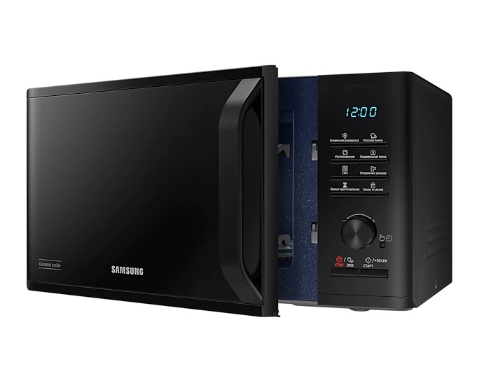 Внутренний объем микроволновой печи Samsung MS23K3515AK составляет 23 л. Внутри устройства расположен поддон диаметром 28.8 см. Камера покрыта биокерамической эмалью, что упрощает очистку печи после использования. Управлять работой устройства можно с помощью кнопок и ручки с поворотным механизмом. На корпусе расположен небольшой дисплей. Модель оснащена таймером и блокировкой от вмешательства детей.