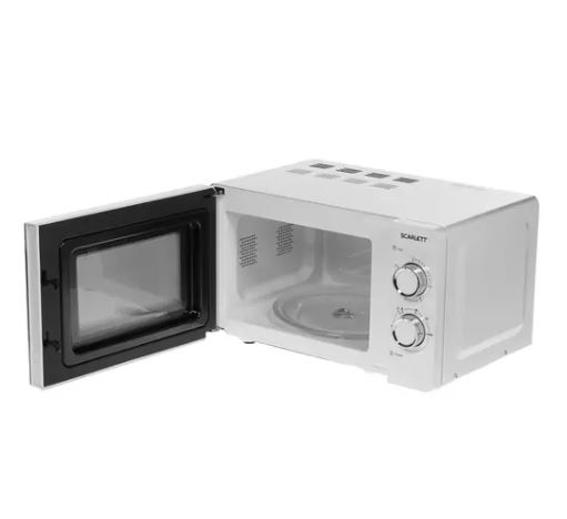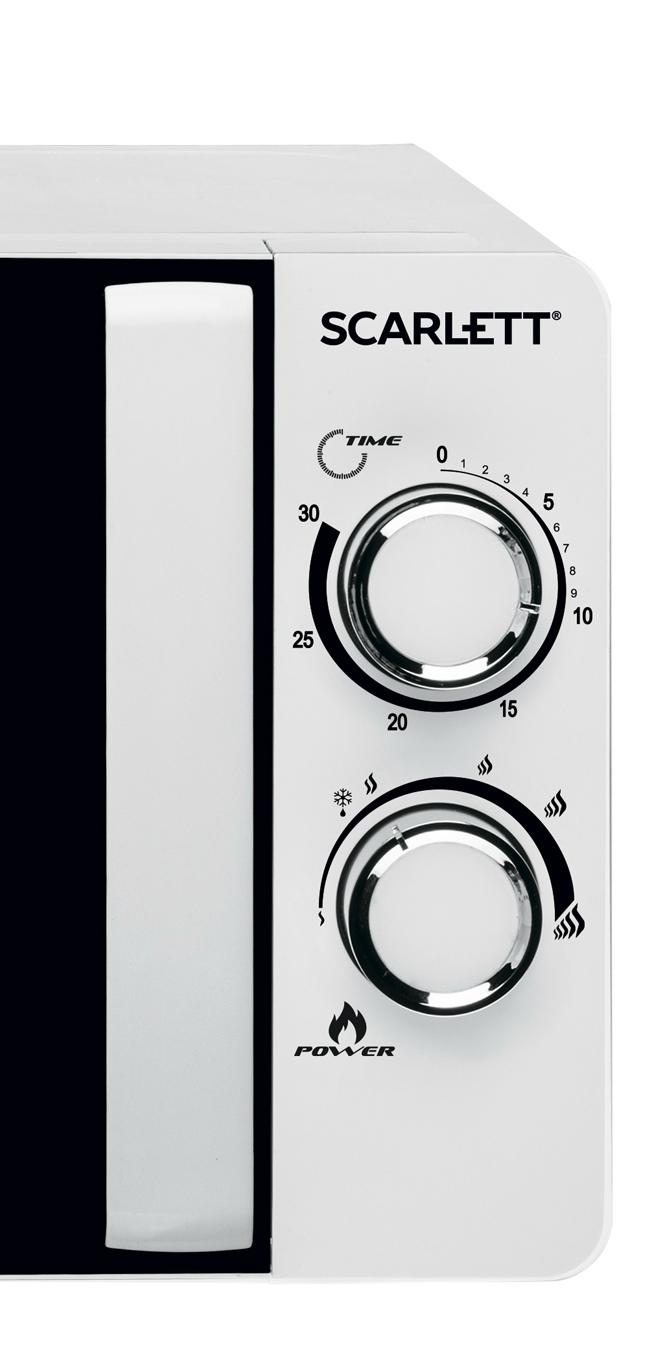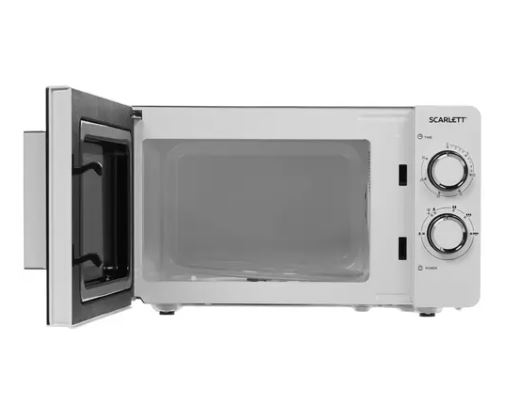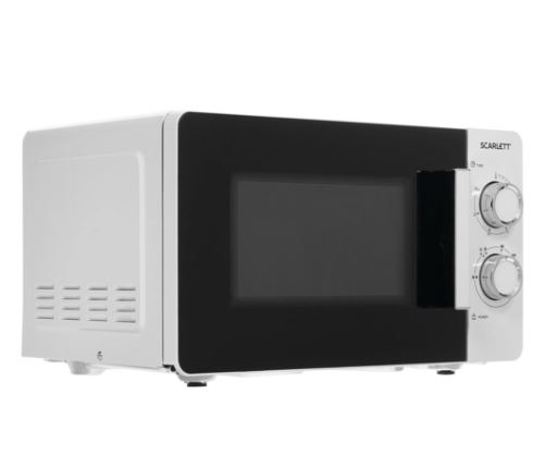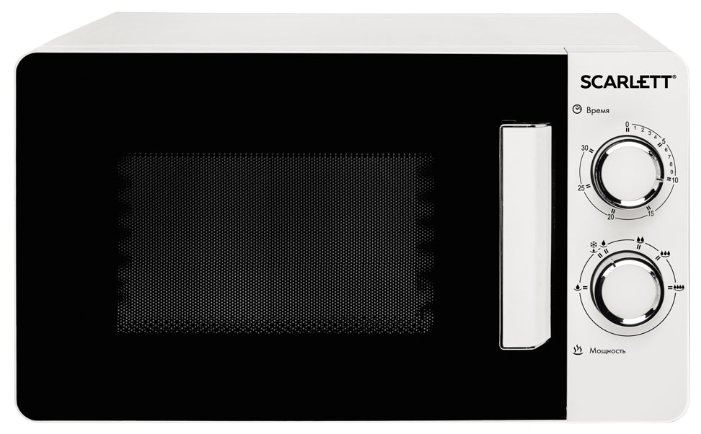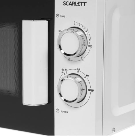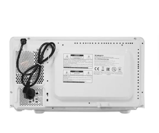 Scarlett SC-MW9020S03M оснащена функцией автоматической разморозки, опций гриля, конвекции, комбинированных режимов, программ приготовления не предусмотрено. Инверторного управления мощностью, отключения звукового сигнала, отсрочки старта нет. В комплект входит роликовая подставка, поворотный стол и поддон из стекла.