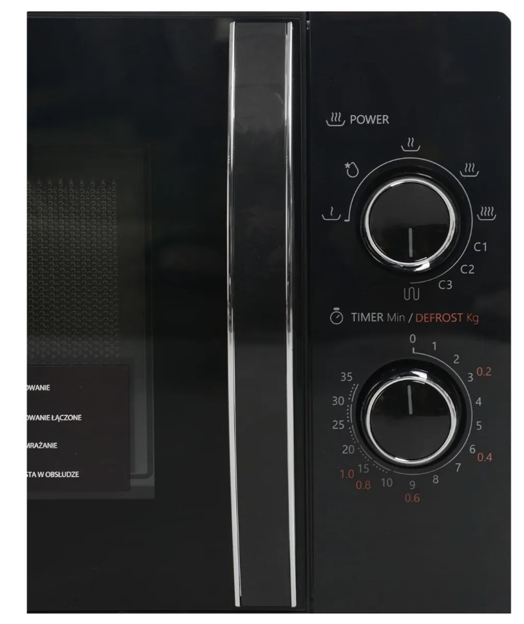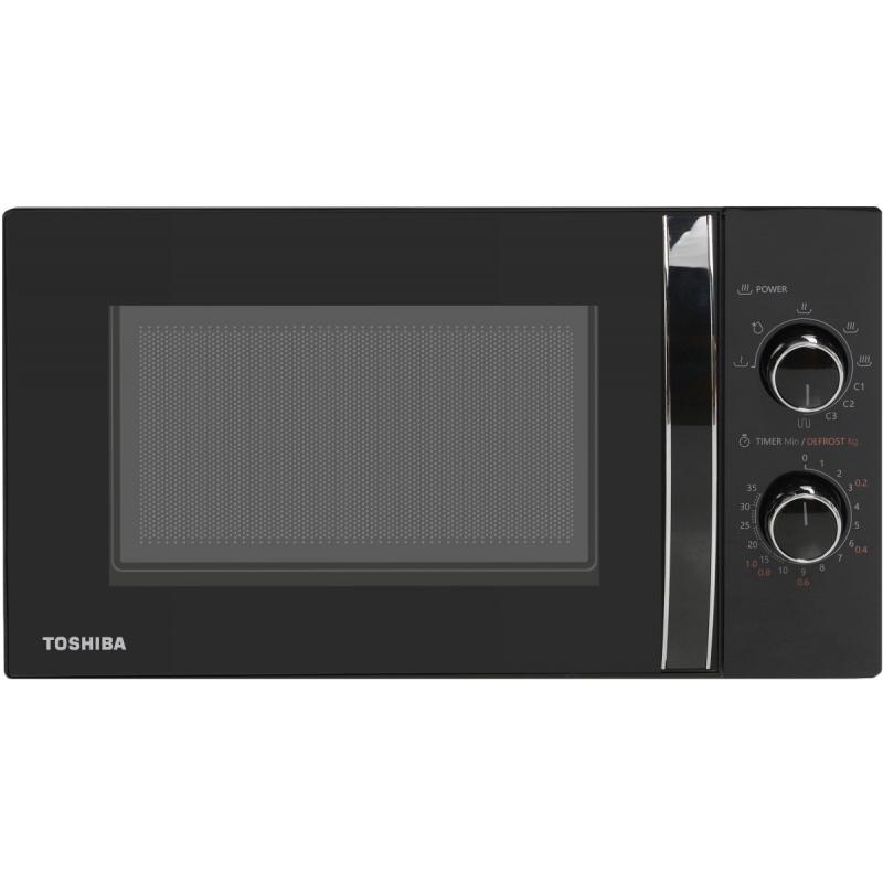 Микроволновая печь от компании Toshiba представлена в черном цвете. Она имеет объем 20 л, а также мощность 800 Вт. Управление устройством легко осуществляется с помощью поворотных механизмов.