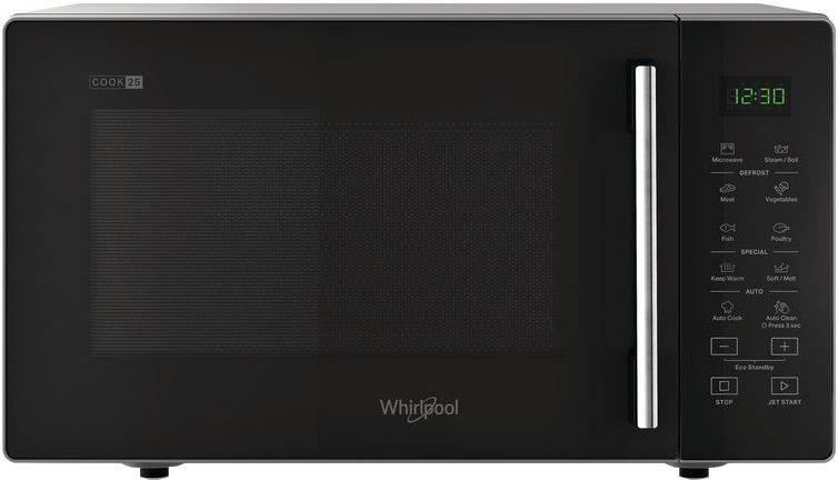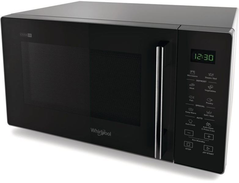 Микроволновая печь Whirlpool MWP 252 SB (25 л, 900 Вт, переключатели сенсор, дисплей, серебристый/черный) Микроволновая печь WHIRLPOOL MWP 252 SB имеет ширину 48,3 см и глубину 41,4 см. В устройстве есть автоматические программы и меню от шеф-повара. Наслаждайтесь горячими блюдами за считанные минуты, просто выберите необходимый уровень мощности в микроволновой печи WHIRLPOOL MWP 252 SB: 300 Вт — для рагу, растапливания масла, размягчения мороженого, масла и сыра; 375 Вт — для блюд с деликатными ингредиентами