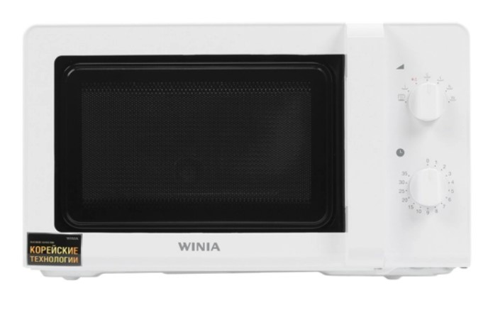 Поворотный механизм в конструкции дополнен таймером на 35 минут. Задав нужные параметры, вы можете отправляться заниматься своими делами. По окончании заданного промежутка времени раздастся звуковой сигнал. Эмалированная сталь, которая служит покрытием камеры, позволяет легко очищать ее по окончании разогревания еды в микроволновой печи Winia KOR-6627WW.