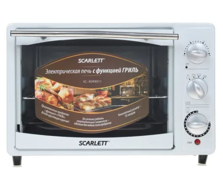 Модель Scarlett SC-EO93O11 работает при наличии трех рабочих режимов. Нагрев духовки осуществляется в пределах 100-250 градусов, что способствует полноценному запеканию любых блюд. Духовой шкаф дополнен таймером на 1 час с функцией автоматического отключения, а также удобным рабочим индикатором. Печь обладает габаритами 43х28.4х33 см.