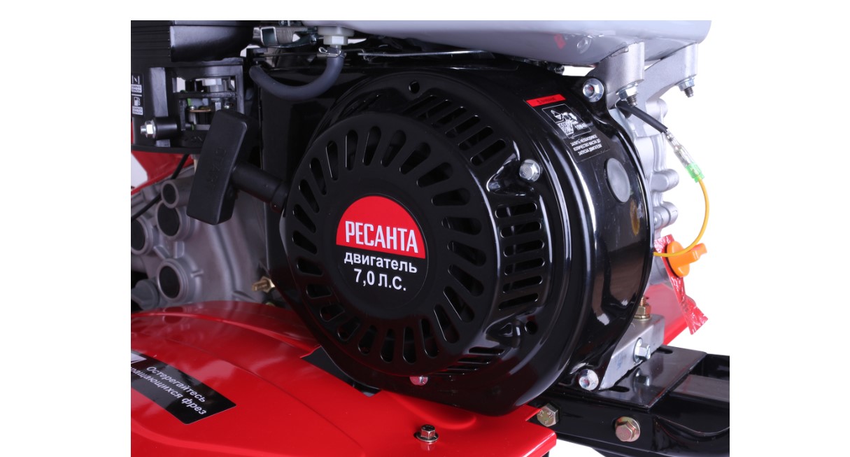 Модель мотоблока МБ-7000P-10 Ресанта используется для проведения работ на участках небольших фермерских и приусадебных участках. Мотоблок оснащён надёжным бензиновым 4-тактным, одноцилиндровым, двигателем, мощность которого составляет 7 л.с. и стальными закалёнными фрезами, что позволяет справляться с любыми почвами. Воздушный фильтр с масляной ванной обеспечивает устойчивую работу в условиях сильной запылённости. Корпус редуктора сделан из алюминия, тип редуктора: шестеренчато-цепной. Объём топливного бака – 3.6 л. Расход топлива – 375 гр/кВт в час. Ширина обработки – 100см. Диаметр фрез: 30 см, глубина обработки регулируется сошником.