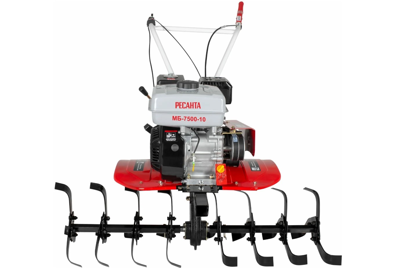 МБ-7500P-10 Ресанта - сельскохозяйственная машина, которая подойдет для механизации большого списка работ на приусадебном участке, в саду или небольшом фермерском хозяйстве. Мощности достаточно для обработки средних и больших территорий. Модель отличается высокой маневренностью, позволяет комфортно работать в узких междурядьях. С помощью разборной фрезы можно регулировать ширину обработки почвы от 45 см до 1 м. Мотоблок подходит для вспахивания почвы, в том числе целины. Закаленные фрезы диаметром 30 см. идут в комплекте. Глубина вспашки регулируется сошником.