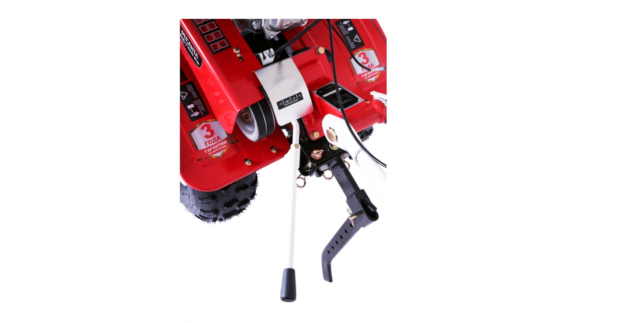 Мотоблок позволяет регулировать ширину и глубину обработки почвы. Максимальная ширина обработки на стандартных фрезах: 100 см. Диаметр фрез: 30 см, глубина регулируется сошником. Закаленные фрезы позволяют культивировать все виды почв, включая целинные.