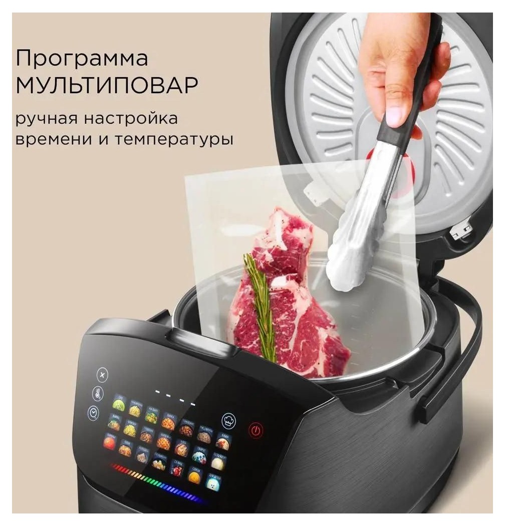 Мультиварка РЕДМОНД MC101 — многофункциональный прибор с 23 автоматическими программами и функцией МУЛЬТИПОВАР идеально подходит для приготовления любых блюд. Настройте время и температуру под свои рецепты и готовьте без усилий. Цветной дисплей и сенсорное управление упрощают процесс, а функция Color Chef подскажет, когда блюдо готово. Технология BoilContol предотвратит выкипание жидкости, обеспечивая комфорт в приготовлении.
