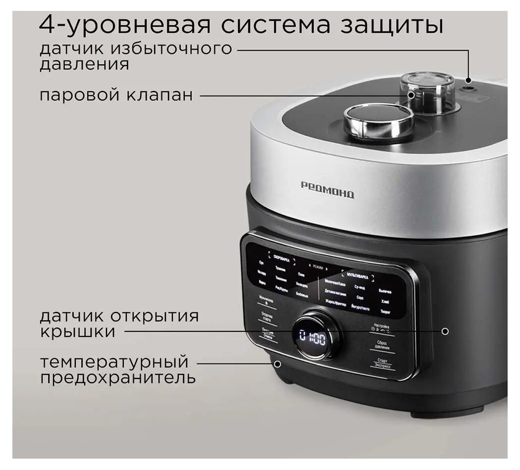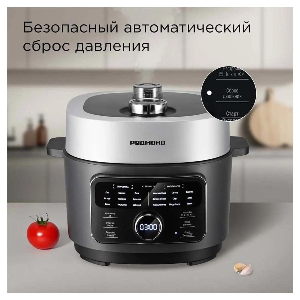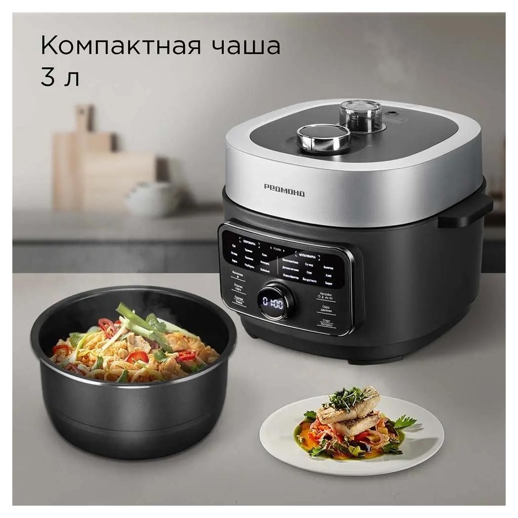Мультиварка-скороварка РЕДМОНД MP112 — универсальный кухонный прибор, который ускоряет приготовление любимых блюд до 3 раз по сравнению с плитой и до 2 раз по сравнению с обычной мультиваркой. Оснащена 20 автопрограммами для приготовления блюд на любой вкус. Имеет стильный корпус с удобным управлением, что делает ее отличным решением для любой кухни. Компактная чаша объемом 3 литра с многослойным антипригарным покрытием DAIKIN® обеспечит легкость ухода и долговечность. Безопасность использования гарантирует 4-уровневая система защиты и автоматический сброс давления.