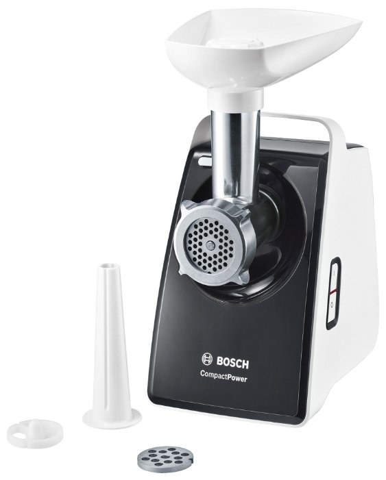 Мясорубка Bosch CompactPower MFW3710B оснащена тремя насадками, одна из которых предназначена для приготовления колбас. Максимальная мощность составляет 500 Вт, поэтому устройство способно переработать до 1,8 кг мяса в минуту. В конструкции предусмотрен специальный предохранитель, деактивирующий модель в случае перегрева, что обеспечивает безопасность во время эксплуатации. Во время функционирования мясорубки уровень шума составляет всего 78 дБ.