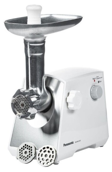 Стандартная комплектация включает в себя 3 насадки для изготовления колбасной продукции. Panasonic MK MG1501 может стать настоящим помощником на кухне, если дополнить его набором с насадками, позволяющими шинковать овощи, производить натуральные соки и осуществлять целый спектр работ по готовке.