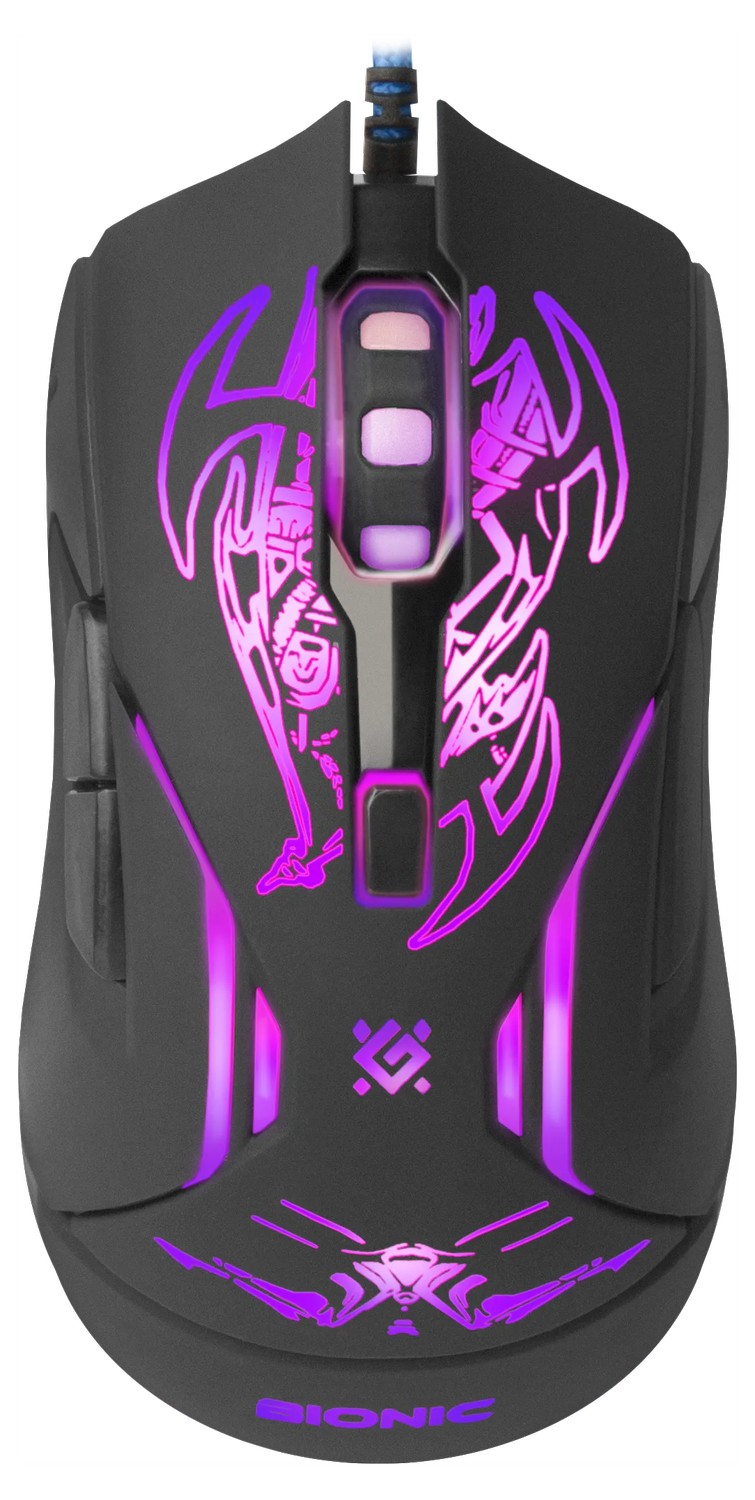 Defender Bionic GM-250L облачена в черный корпус с нанесенным на нем абстрактным рисунком, который в процессе работы мышки светится разными цветами. Это позволяет создать уникальную игровую атмосферу, чтобы игра была комфортной и поглощала пользователя полностью. Модель предусматривает наличие светодиодного оптического датчика, который способен работать с максимальным разрешением 3200 dpi: мышь поддерживает еще 3 режима работы датчика 800 dpi, 2400 dpi и 1800 dpi. Для комфортного управления на корпусе мыши имеется 6 кнопок: из них 5 кнопок обладают возможностью программирования.