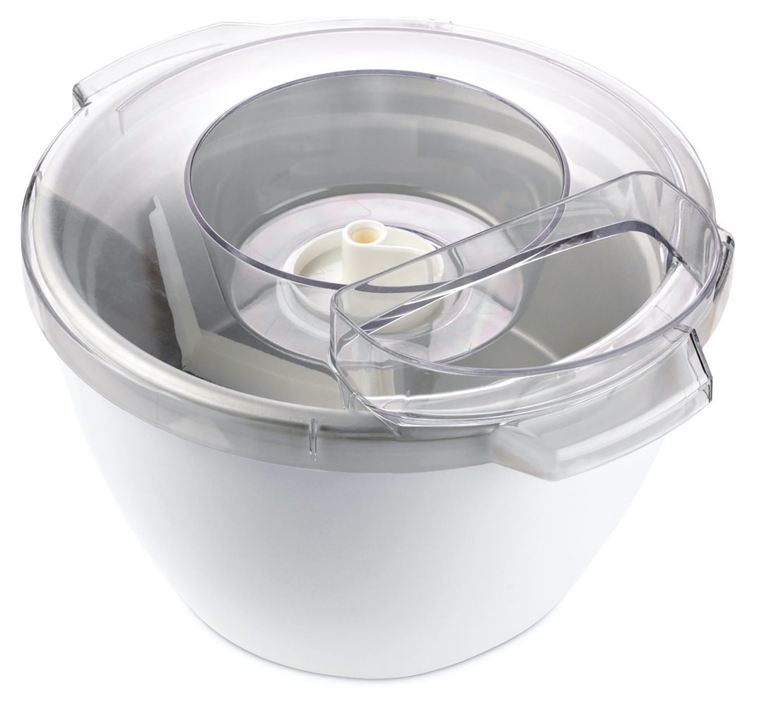 Насадка для кухонных машин Kenwood AT956A/AT957А представляет собой мороженицу, совместимую с устройствами из серии Chef. Насадку можно использовать для приготовления полностью натурального мороженого, которое наилучшим образом соответствует вкусам владельца. С её помощью легко готовятся молочное, сливочное, фруктовое мороженое, йогуртный лёд.