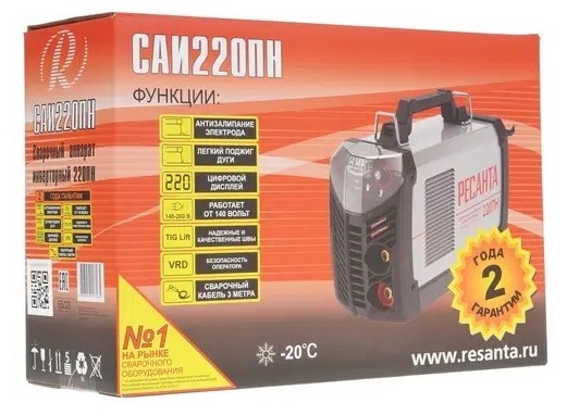 Ресанта САИ 220ПН оснащен дисплеем, благодаря которому стало гораздо проще осуществлять управление устройством. Кроме того, в данном приборе имеется также контроллер форсажа дуги. Чтобы Вы могли не беспокоиться о максимально допустимых нагрузках, аппарат оснащен системой защиты, предотвращающей перегрев устройства.