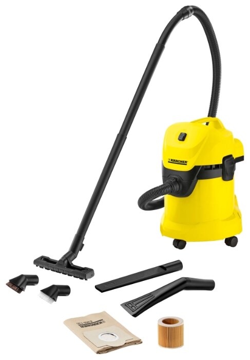 В комплект хозяйственного пылесоса WD 3 Car включены специальные аксессуары для чистки автомобиля, с помощью которых вы без труда очистите приборную панель, багажник и салон автомобиля, включая труднодоступные участки под сиденьями. Особая конструкция всасывающей насадки для пола помогает легко справиться как с сухим мусором, так и с остатками воды, причем, благодаря специальному фильтру-картриджу, смена фильтра при этом не требуется. Пылесос оснащен функцией выдува, имеет эргономичную ручку и продуманную систему хранения принадлежностей.