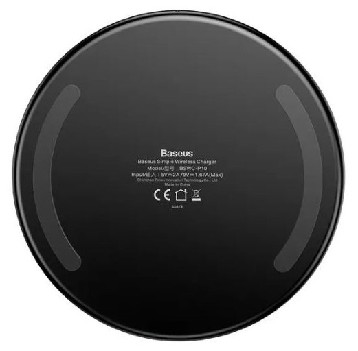 Беспроводное зарядное устройство Baseus Simple Wireless Charger for iP 12 черного цвета. Максимальный выходной ток 2 А. Функция - быстрая зарядка. Кабель в комплекте, длина кабеля: 101 - 200 см.