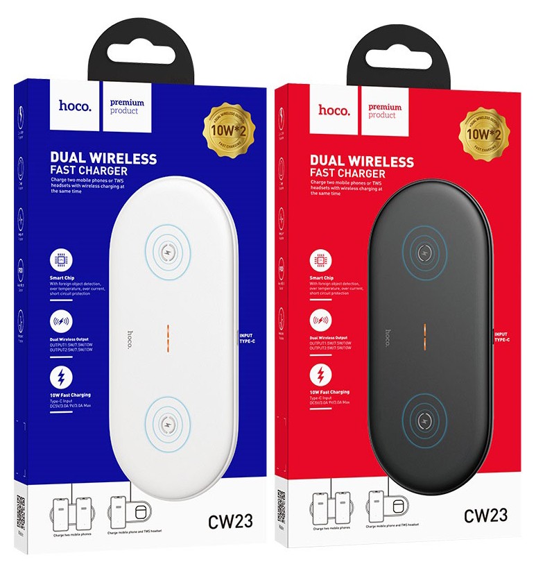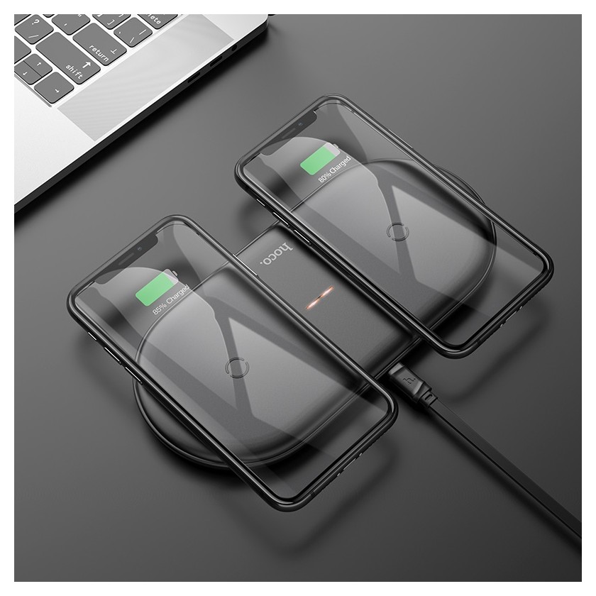 Беспроводное зарядное устройство HOCO CW23 на 2 устройства Black