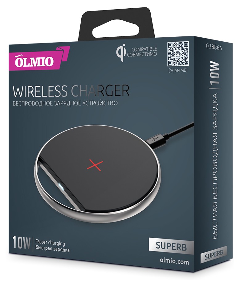 Olmio Superb — беспроводное зарядное устройство для смартфонов, поддерживающих зарядку по стандарту Qi. Модель стильно выглядит, быстро заряжает и безопасна в повседневном использовании.