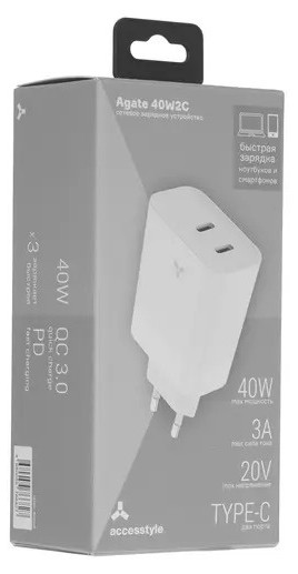 Сетевое зарядное устройство Accesstyle Agate 40W2C White