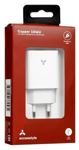 Зарядное устройство Accesstyle Copper 10WU компактно. Модель займет минимум места в дорожной сумке или кармане одежды. Белый цвет зарядного устройства идеально сочетается с дизайном многих смартфонов и планшетов. Материал корпуса ЗУ – приятный на ощупь и устойчивый к механическим воздействиям пластик.