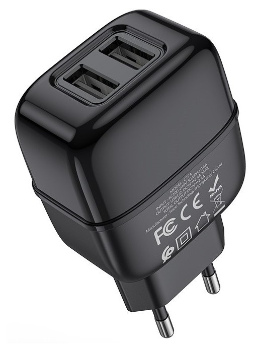 Сетевое зарядное устройство HOCO C77A Highway dual port (черный)