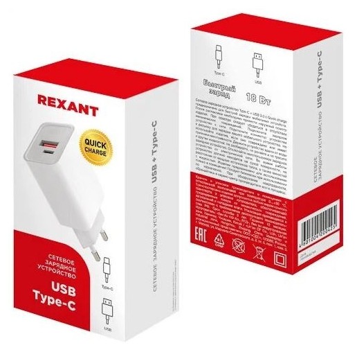 Сетевое зарядное устройство REXANT для iPhone/iPad Type-C + USB 3.0 с Quick charge, белое (SB128GBIR-K3)