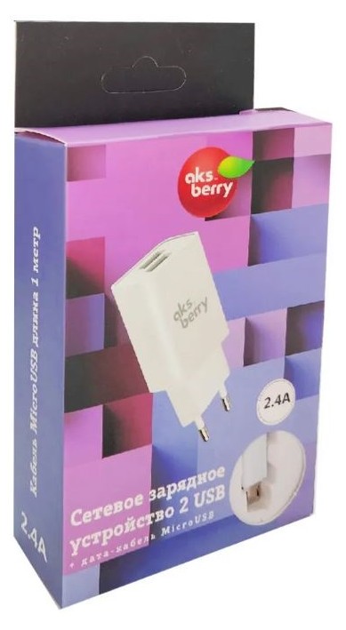 Сетевое зарядное устройство USB+Lightning T38 2 USB 2,4A белый Aksberry