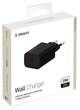 Сетевое зарядное устройство USB Type-C, Power Delivery, 25Вт, черный, Ultra, Deppa