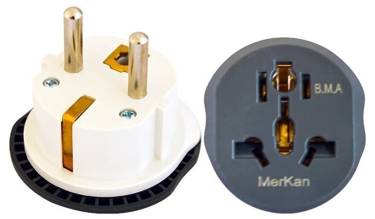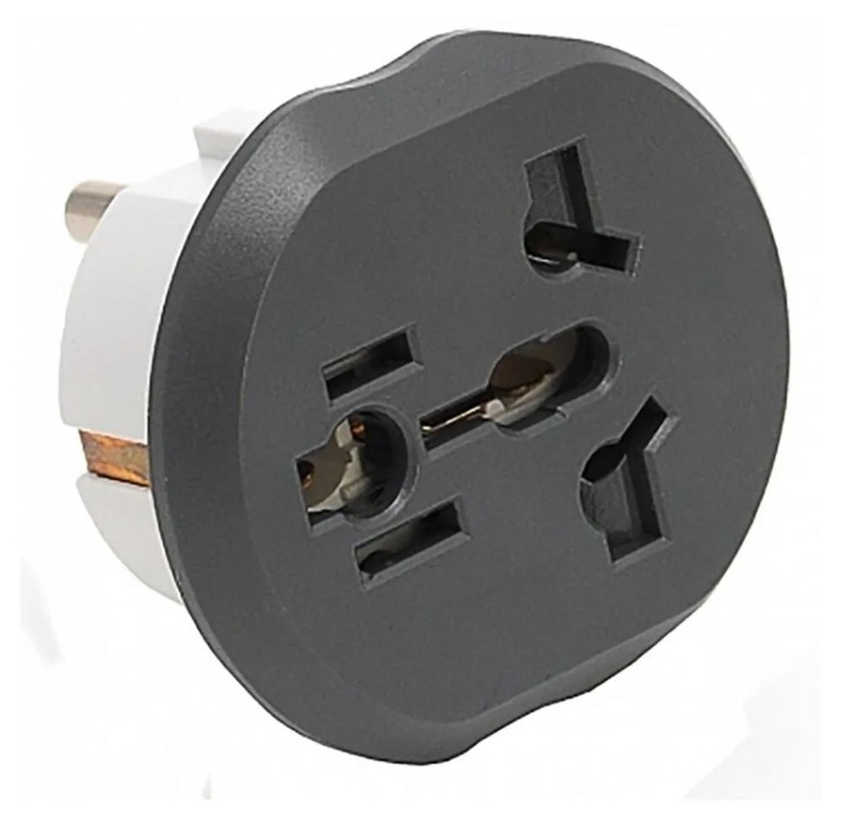 Переходник MERKAN 16А евровилка универсальный Переходник-адаптер меркан, merkan, mercan питания с китайской (английской) вилки на российскую (европейскую) для подключения устройств с китайской вилкой в обычную розетку. Подключать в такой переходник можно российскую (старого образца) и европейскую утолщенную вилку с заземлением. Параметры по усилию контактного зажима дают очень качественное соединение и обеспечивают надежную работу электрических устройств разной мощности и назначения. Как в самой Англии, так и в странах, которые когда-то были ее колониями (Гонконг, Сингапур, Малайзия) принято использовать в бытовой электрической сети разъемы с тремя контактами. Этот переходник может использоваться для подключения таких мощных приборов, как фен, утюг и т.п. выдерживает 16А 3520вт.