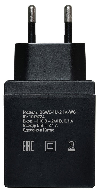 Зарядное устройство Digma DGWC-1U-2.1A-BK 2.1A Black