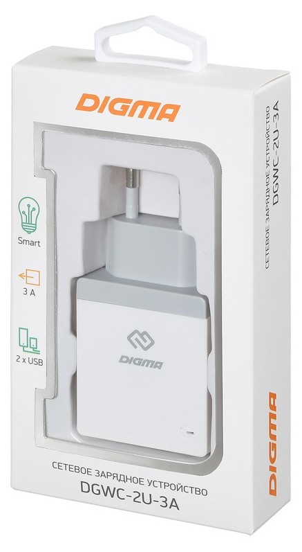 Сетевое зарядное устройство Digma DGWC-2U-3A-WG 3A снабжено двумя портами USB с силой тока до 3 А. Благодаря этому можно заряжать два смартфона или смартфон и планшет одновременно. Зарядное устройство пригодится дома, в офисе, во время поездки. Современный аккуратный дизайн делает его превосходным дополнением к окружающему интерьеру. Само устройство выполнено в белом цвете.