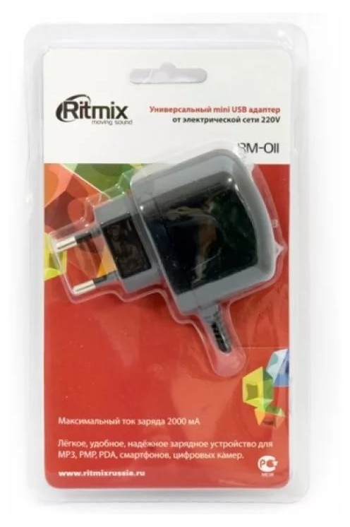 Ritmix RM-011 – это универсальный mini-USB адаптер от сети 220 В. Адаптер совместим с устройствами, для которых предусмотрена зарядка/питание через mini-USB разъем. В частности, RM-011 идеально подходит для зарядки планшетов, электронных книг, MP3-плееров, PMP, PDA, смартфонов, мобильных телефонов, цифровых камер и т.д. Адаптер оснащен световым индикатором состояния зарядки.
