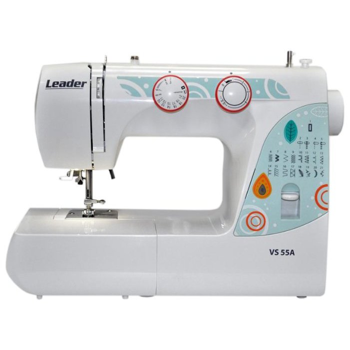 LEADER VS55A комплектуется всем необходимым для начала работы: педалью, тремя шпульками, пластиной для штопки, несколькими лапками, мягким чехлом для хранения машины и другими необходимыми мелочами.