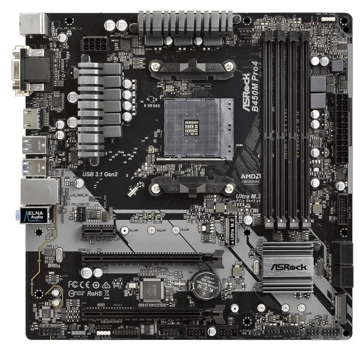 Материнская плата AM4 ASRock B450M PRO4 microATX
