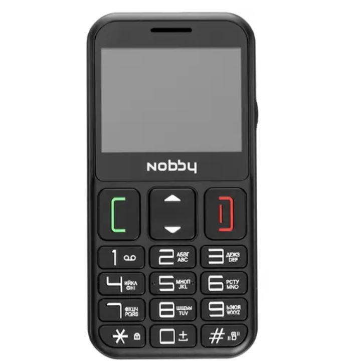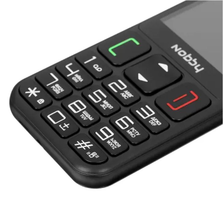 Nobby 240В – простой в использовании мобильный телефон с большими кнопками и понятной навигацией по меню. Такой размер кнопок идеален как для юных пользователей, так и для возрастной категории потребителей, а также для людей с пониженным процентом остроты зрения. С Nobby 240В вы безошибочно наберете нужный номер при любых обстоятельствах. Кроме того, наличие в модели кнопки SOS, позволит мгновенно отправить сигнал тревоги и проинформировать о возможной опасности. Устройство поддерживает установку двух SIM-карт, благодаря этому можно выбрать наиболее выгодные тарифные планы для звонков друзьям, коллегам и близким. 2,3-дюймовый дисплей с яркой подсветкой обеспечивает достойную видимость изображения. Модель оснащена емким аккумулятором, что позволит вам продолжительное время оставаться на связи. Аппарат поддерживает все популярные форматы, а также FM-радио. Для хранения музыки и фото предусмотрена работа с картами microSDHC емкостью до 16 ГБ. Nobby 240В – ваш удобный, функциональный и просто незаменимый помощник